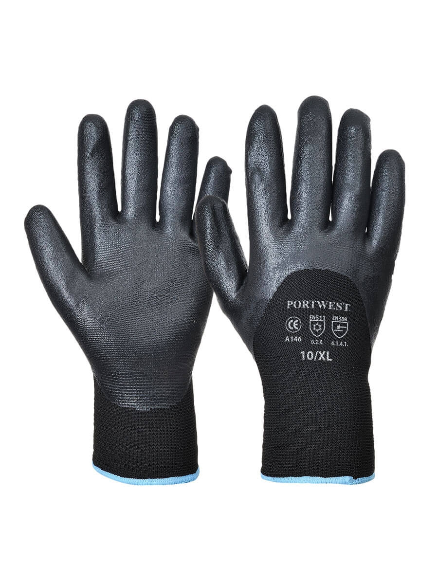 Die neueste Entwicklung im Handschutz. Zwei Lagen halten die Wärme im Handschuh und die 3/4 Beschichtung hält die Hände trocken. Weiche Nitrilschaum Beschichtung bietet vollständigen Schutz für die Finger gegen Kälte und Wasser.