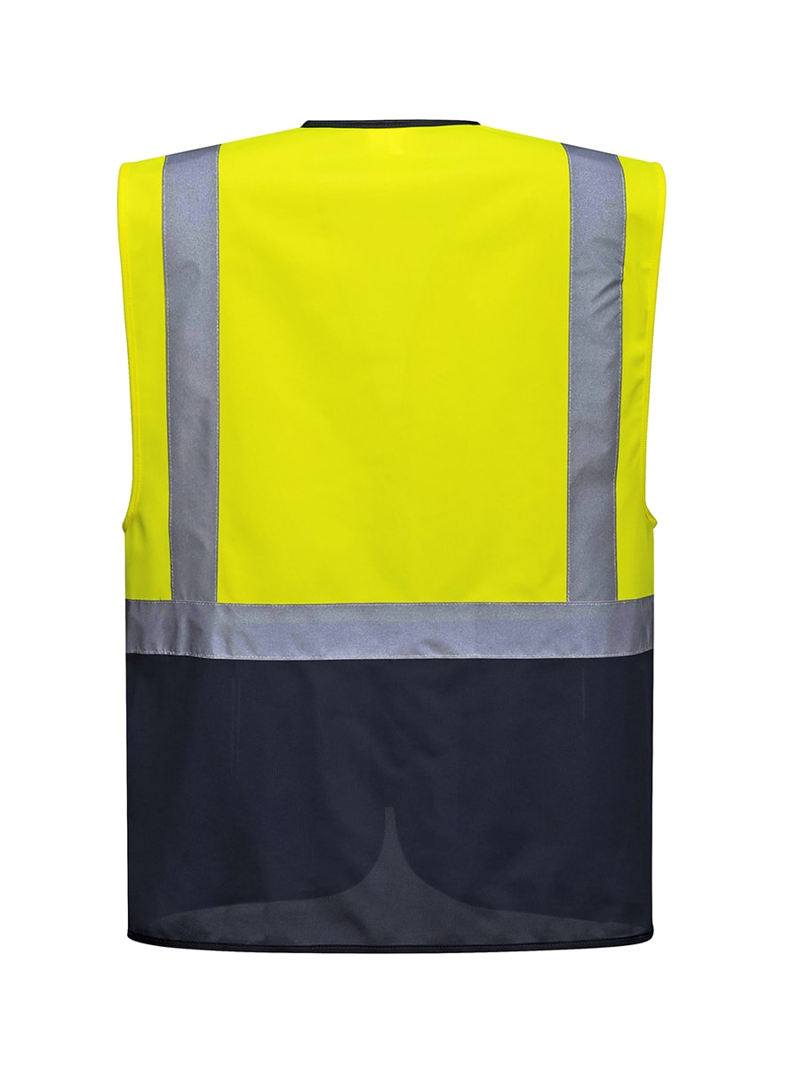 Diese zweifarbige Variante unserer Exekutiv Weste verfügt über mehrere praktische Taschen, einen doppelten Ausweishalter, einen D-Ring und eine Funkgeräteschlaufe. Er ist in einer Reihe von kontrastierenden Farbkombinationen erhältlich, um der steigenden Nachfrage am Arbeitsplatz gerecht zu werden.