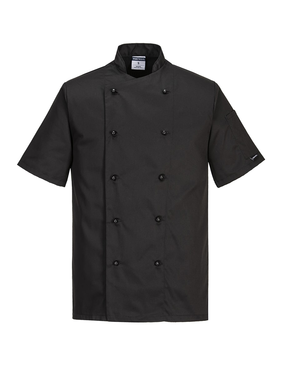 Entwickelt für heiße Arbeitsplätze fühlen Sie sich mit dieser Kurzarmjacke angenehm kühl und sehen immer gut aus. Das klassische Styling bietet viele hochwertige Ausstattungsmerkmale wie pflegeleichtes Material und eine praktische Ärmeltasche.