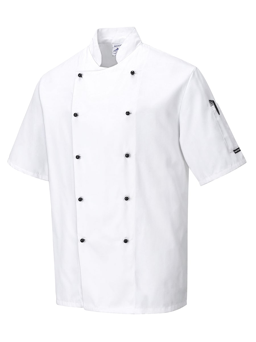 Entwickelt für heiße Arbeitsplätze fühlen Sie sich mit dieser Kurzarmjacke angenehm kühl und sehen immer gut aus. Das klassische Styling bietet viele hochwertige Ausstattungsmerkmale wie pflegeleichtes Material und eine praktische Ärmeltasche.