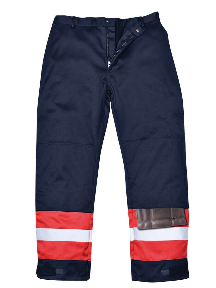 Diese Hose ist mit Reflexstreifen mit Doppelnaht für erhöhte Sichtbarkeit ausgestattet. Mit dreifach Nähten, Warnschutzstreifen an den Beinen, Kniepolstertaschen, Zollstocktasche und Messing-Reißverschluss und verstellbare Beinbündchen.