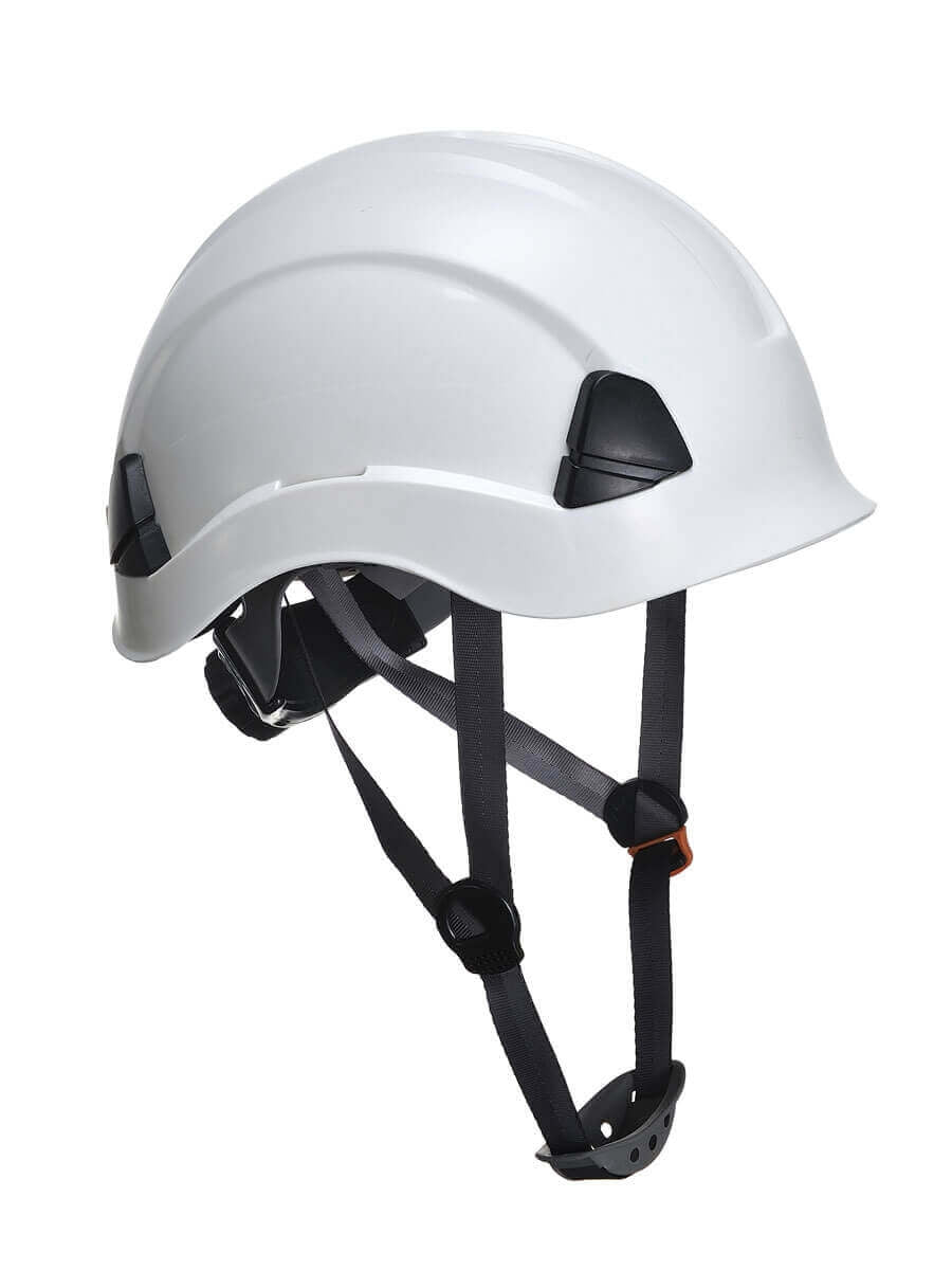 Speziell für den Einsatz bei Arbeiten in der Höhe konzipiert. Dieser leichte und bequeme Helm ohne Schirm ist kompakt und verfügt über eine nicht belüftete ABS-Schale, und eine Radratschenverstellung, Größe 52-63 cm. Verbessertes technisches Schweißband und 4-point (Y-Stil) mit weichem Gummi-Kinnschutz im Lieferumfang.
