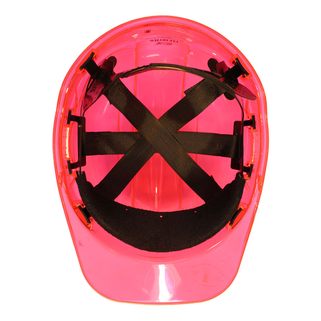 Exklusiv für Portwest designt und patentiert. Die durchsichtige Helmschale ermöglicht ein erweiterteres Sichtfeld. Man kann nach oben schauen, ohne den Kopf zu neigen. Extra starke und trotzdem leichte Schale aus Polycarbonat mit UV-Schutz. Textile 6-Punkt-Befestigung, weitenverstellbar und belüftet.