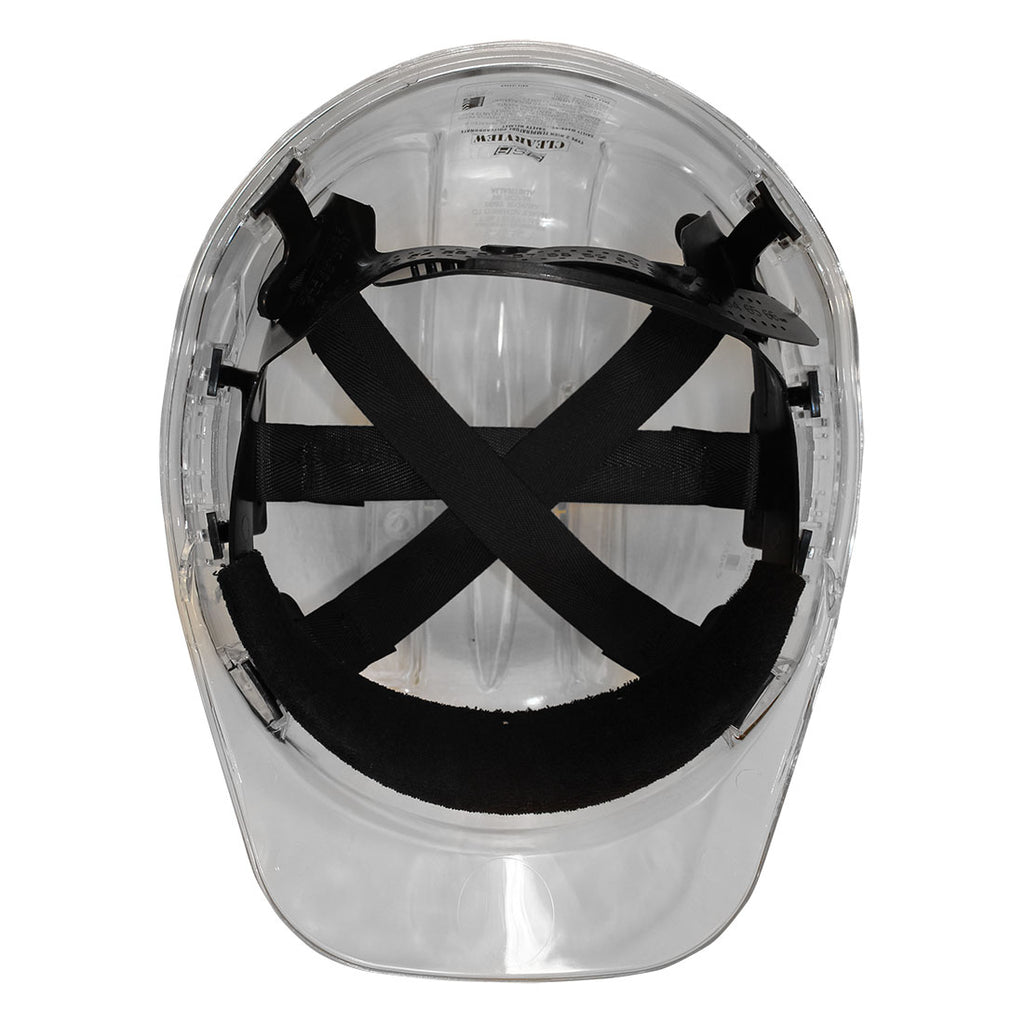 Exklusiv für Portwest designt und patentiert. Die durchsichtige Helmschale ermöglicht ein erweiterteres Sichtfeld. Man kann nach oben schauen, ohne den Kopf zu neigen. Extra starke und trotzdem leichte Schale aus Polycarbonat mit UV-Schutz. Textile 6-Punkt-Befestigung, weitenverstellbar und belüftet.