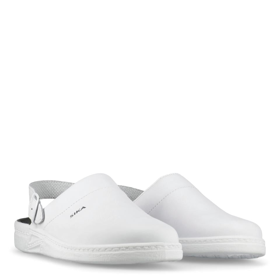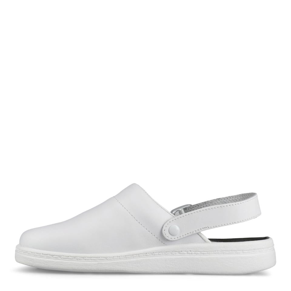 Komfortabler und flexibler Clog mit Zehenschutzkappe und Fersenriemen. Breite Passform und gute Stoßabsorbierung. Weiches und komfortables LBS-Fußbett aus Schaum und Leder. Erhältlich in den Farben Schwarz und Weiß. In der Farbe Schwarz mit ProNose für besonders gute Strapazierfähigkeit.
