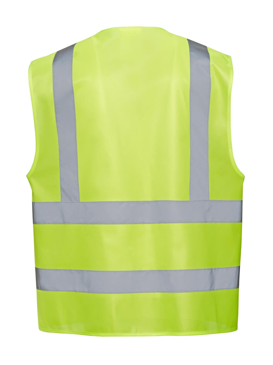 • Warnschutzweste EN 20471 zwei 5 cm breite Reflektionsstreifen umlaufend um den Körper und über jede Schulter mit Klettverschlüsse einstellbar